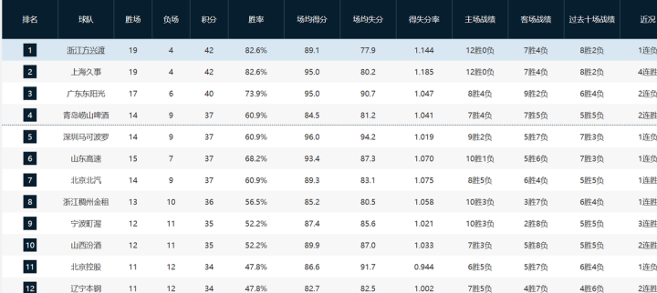 北京首钢则是纸面实力最强,号称集齐了周琦+赵睿+陈盈骏的超豪华球队,可是如今却被伤病拖累,疑似被主教练-许指导拖累,如今这支球队的战绩可不好,悄然被挤到了第7。此外球队之间的化合反应也并不是很好,或许是受限于球队人员不齐整导致的吧,总而言之,目前这支球队没能让球迷看到争冠希望。而最新的战绩排名也来到了第7名,要知道少赛一场的山东高速男篮都排名第6,可想而知北京首钢的反差有多大。
