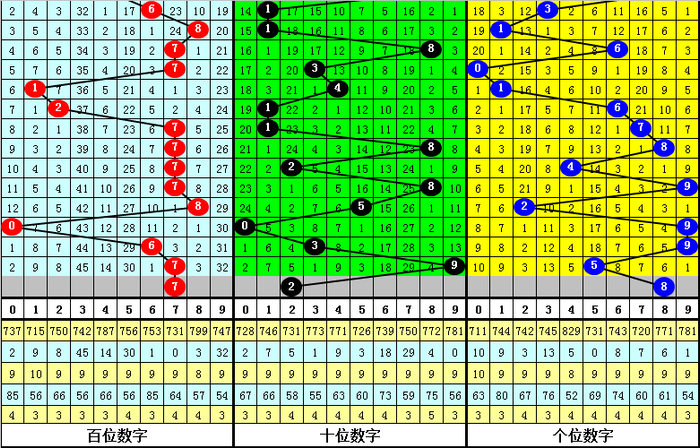 二、体彩排列三前9期奖号开出:216-717-788-724-789-852-009-639-795,其中奖号大小比为18:9,012路比为9:9:9,奇偶比为15:12;