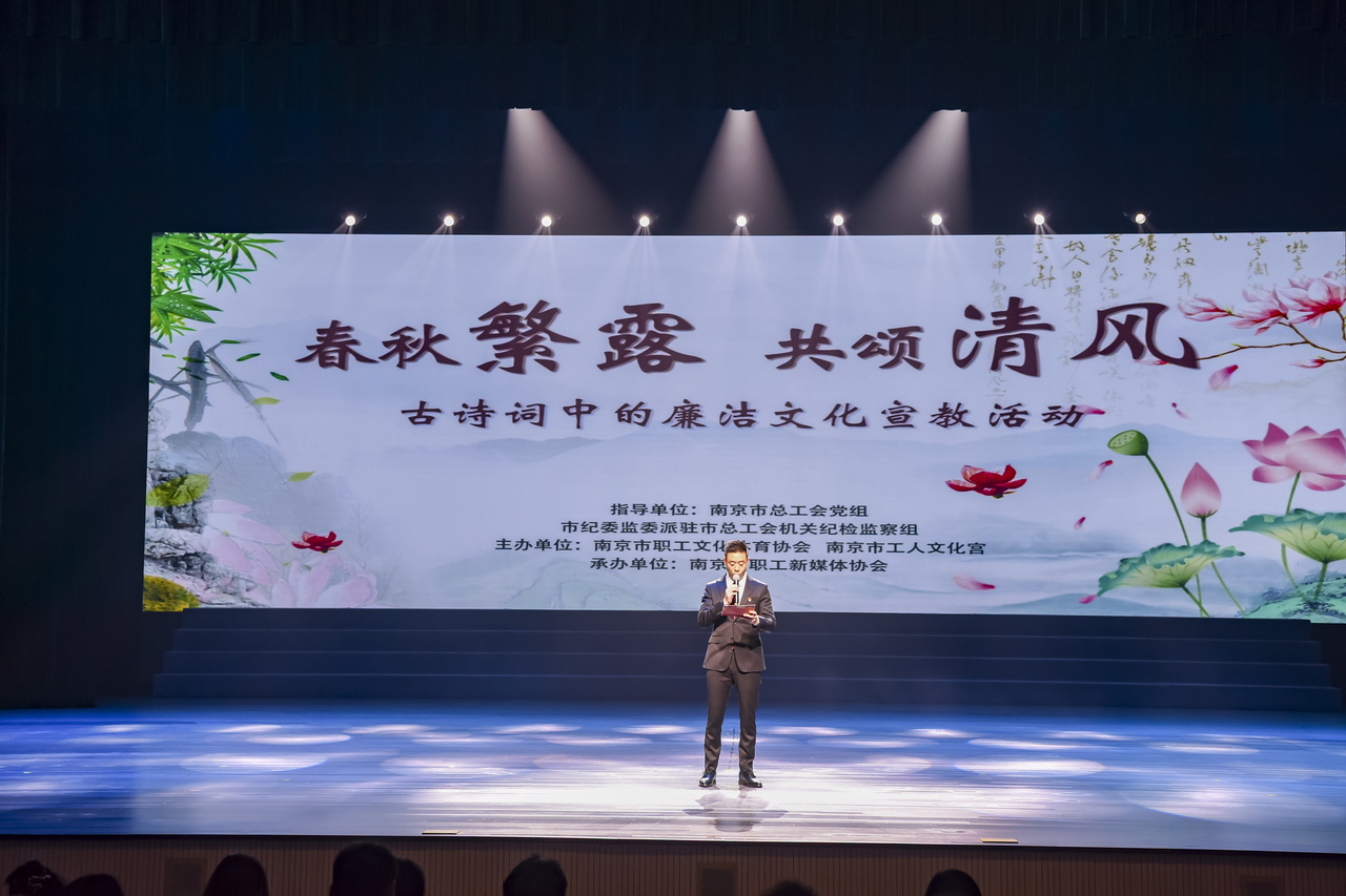 11月14日下午保宇配资,“春秋繁露 共颂清风”古诗词中的廉洁文化宣教活动在南京市工人文化宫工人剧场成功举办。本次活动在南京市总工会党组和南京市纪委监委派驻市总工会机关纪检监察组指导下,由南京市职工文化体育协会、南京市工人文化宫主办,全市部分社区、学校、机关企事业单位党员代表及文化宫党员职工、离退休党员共400余人参加。