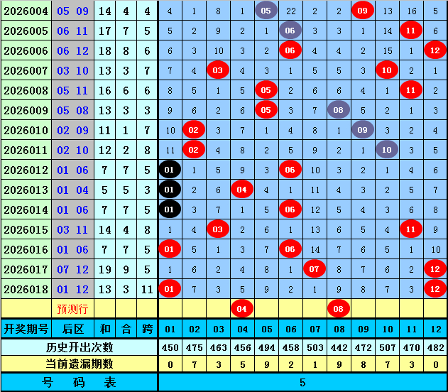 后区五码推荐:01、04、07、08、10